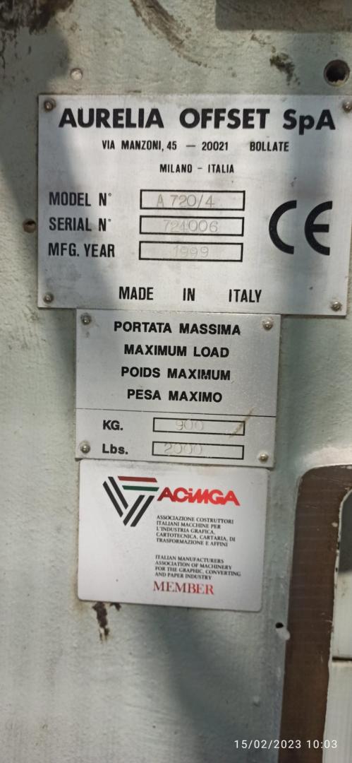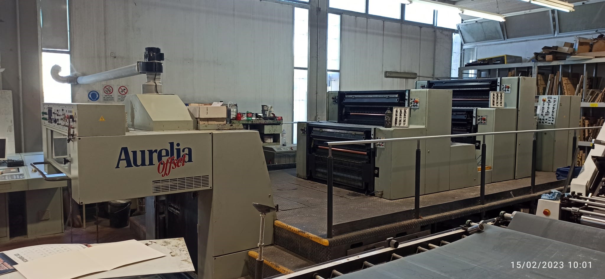 Macchina da stampa offset 4 colori, formato 70x100 dotata di cambio lastre semiautomatico, forno I.R., uscita lunga, lavacaucciu tipo baldwin, revisione anno 2015 copie totali 50.000.000. in produzione, buone condizioni.