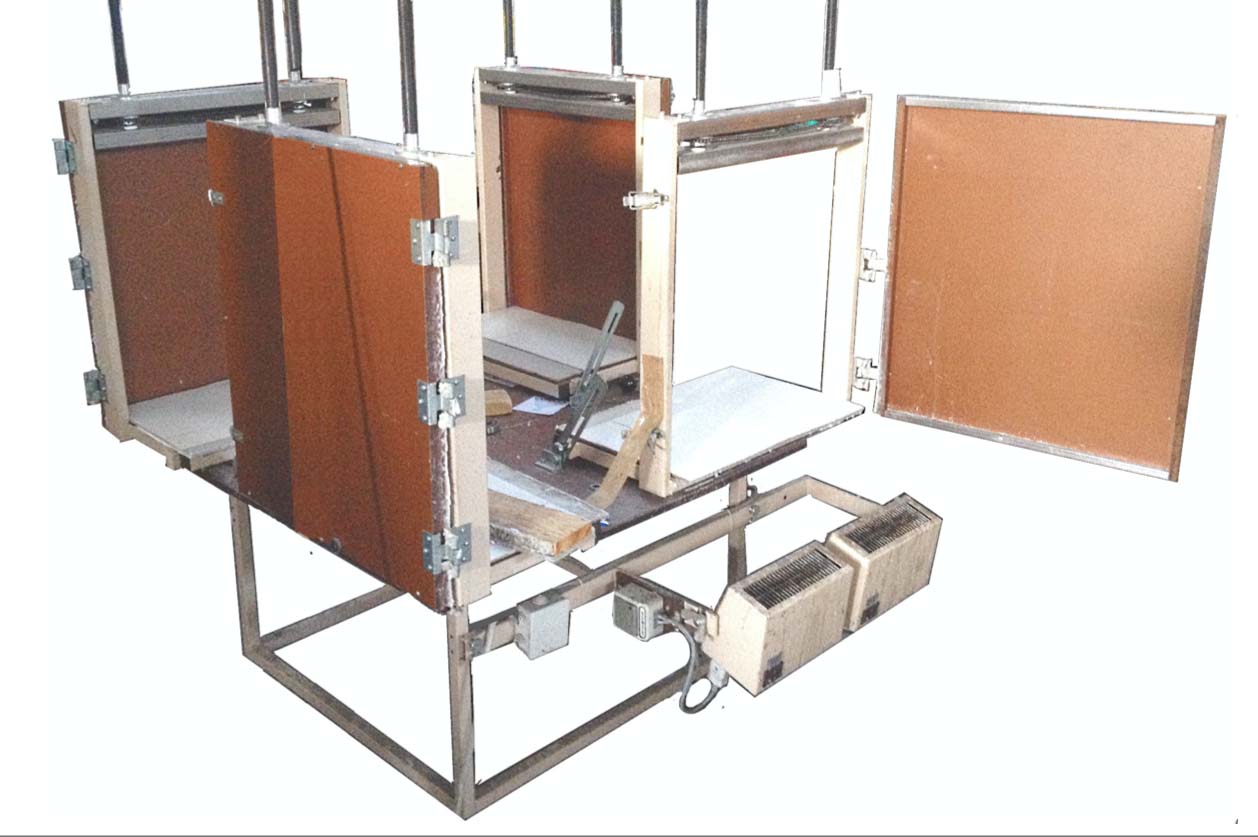 giostra per incollaggio blocchi a 4 stazioni. Permette di incollare fino a 1000 blocchi contemporaneamente, dotata di ventole per asciugatura.