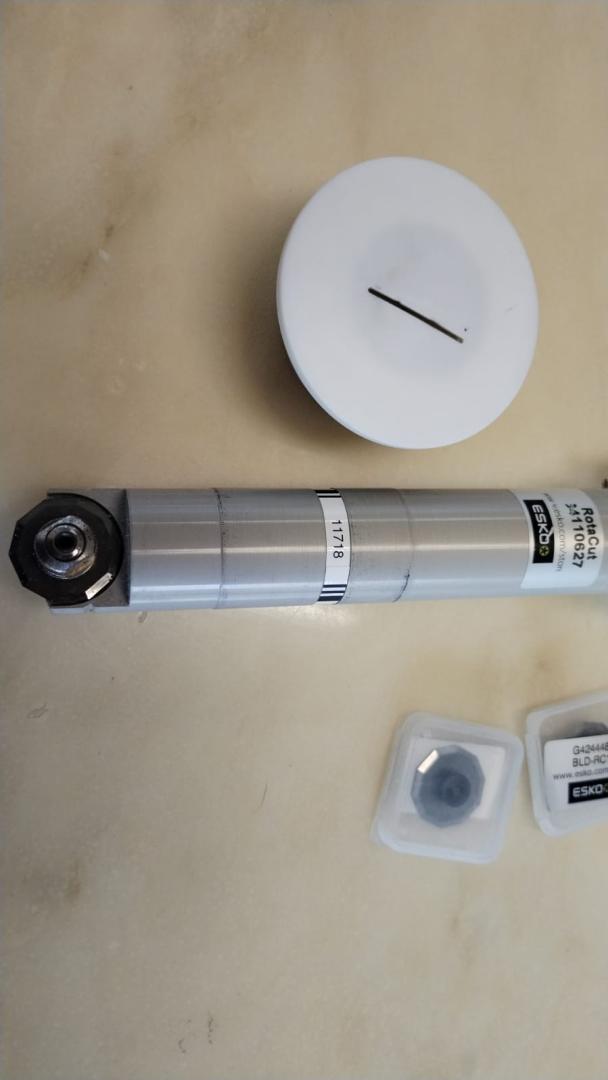 Coltello ROTACUT per KONGSBERG XL. Utensile motorizzato rotante a 10000 giri/minuto per taglio tessuti. Profondità massima di taglio 2mm. Con pochissime ore di utilizzo.
