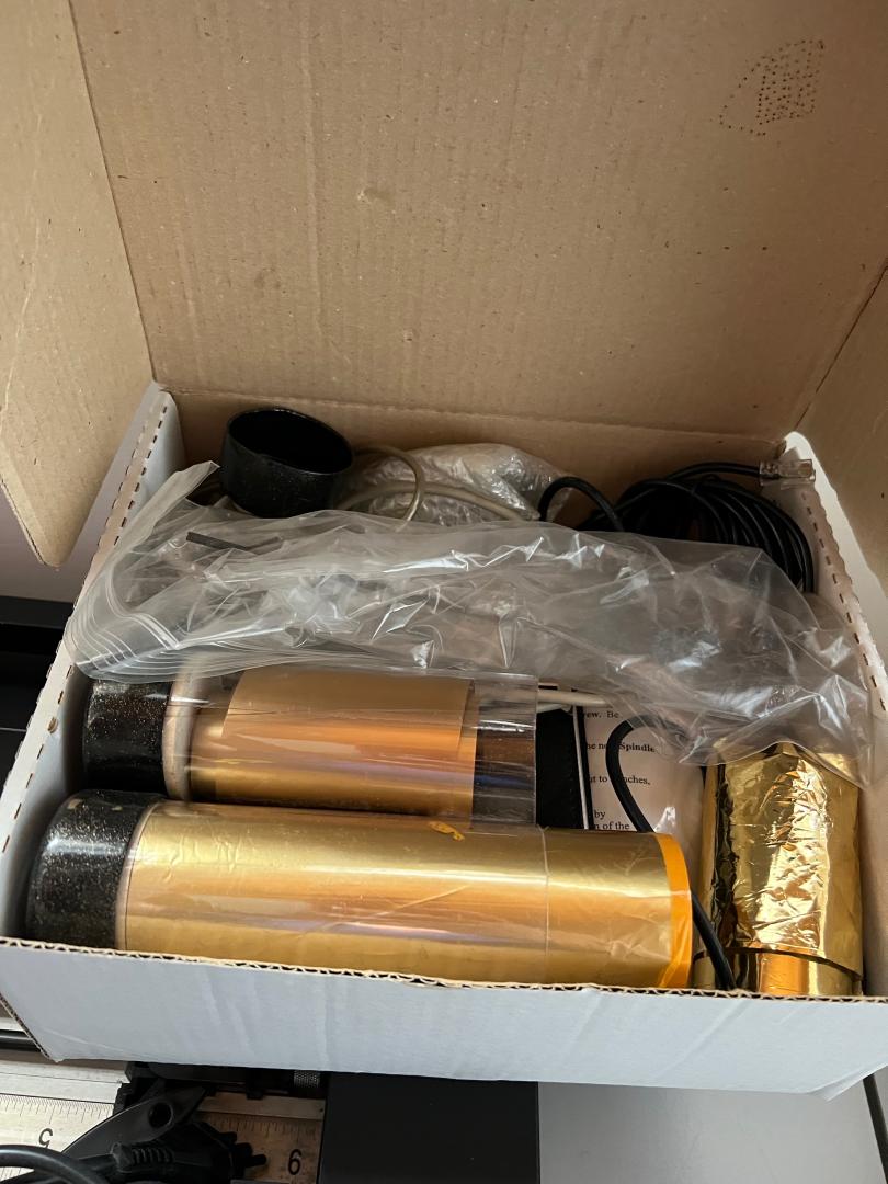 Completo di manuale di istruzioni in italiano, accessori, alcuni rotoli di pellicola/foglia d'oro.