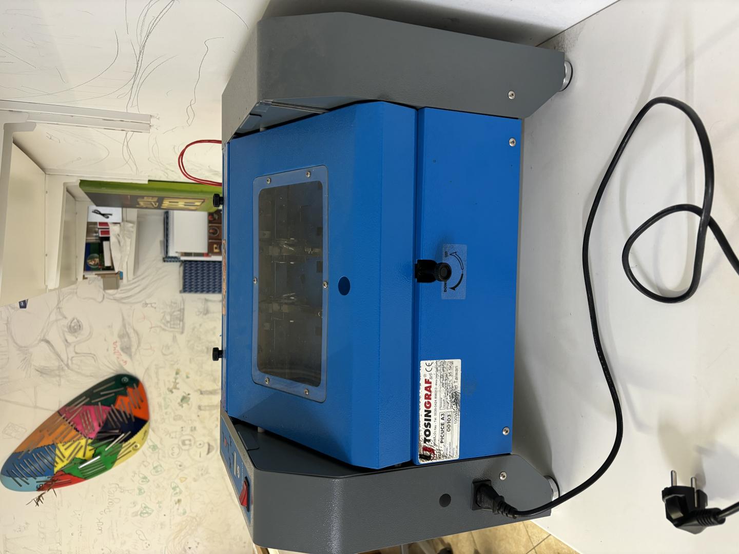 Cucipiega con comando a pulsante e modalità automatica (tramite fotocellule). Contatore opuscoli lavorati. Reverse anti-inceppamento. Segnale luminoso a punti terminati. 2 testine di cucitura (4 posizioni). Formato massimo A3+, minimo A5. Spessore massimo 15 fogli gr. 80. Squadre di battuta
